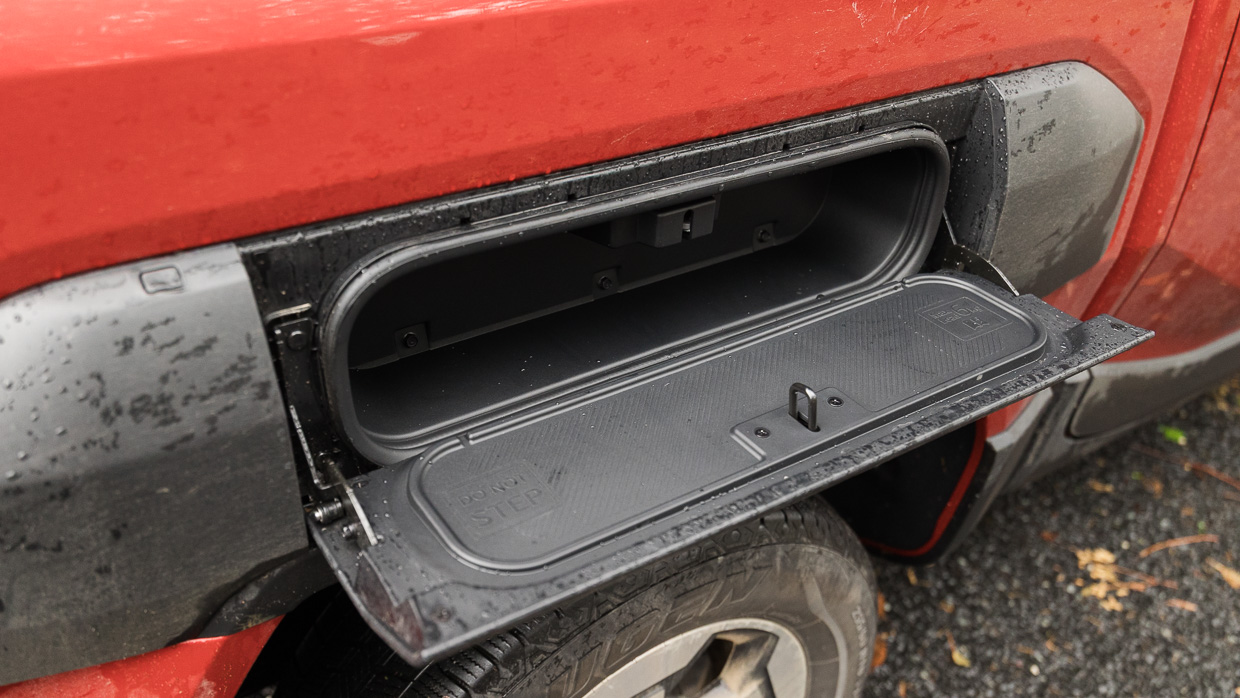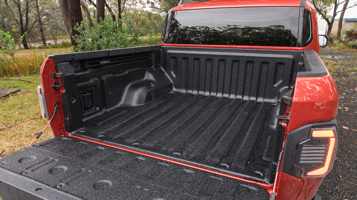 The Kia scores a sort-of-useful storage compartment in its driver side fender, but the inclusion of a doubled sealed 240-volt socket in the tub secures the Tasman’s tub as best here.