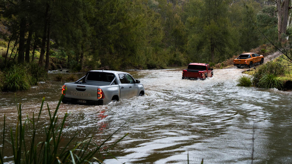 Although the smallest ute on test, the Hilux, has a poor turning circle, plus heavy steering and a stiff ride. Yet it is the undisputed champion off-road.