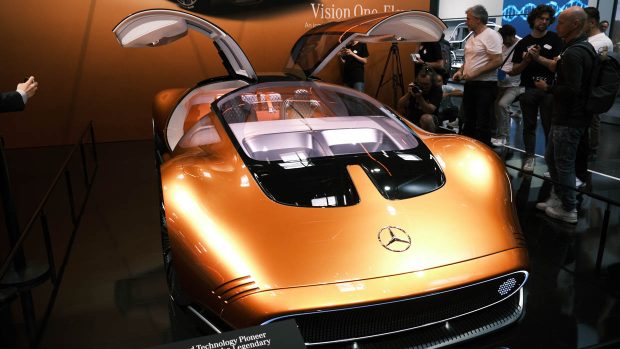 The Mercedes-Benz One-Eleven might be one of the brightest cars at the IAA Mobility Show. With retro looks, gullwing doors, silver seats and large wheels, the One-Eleven concept was a show-stopper.