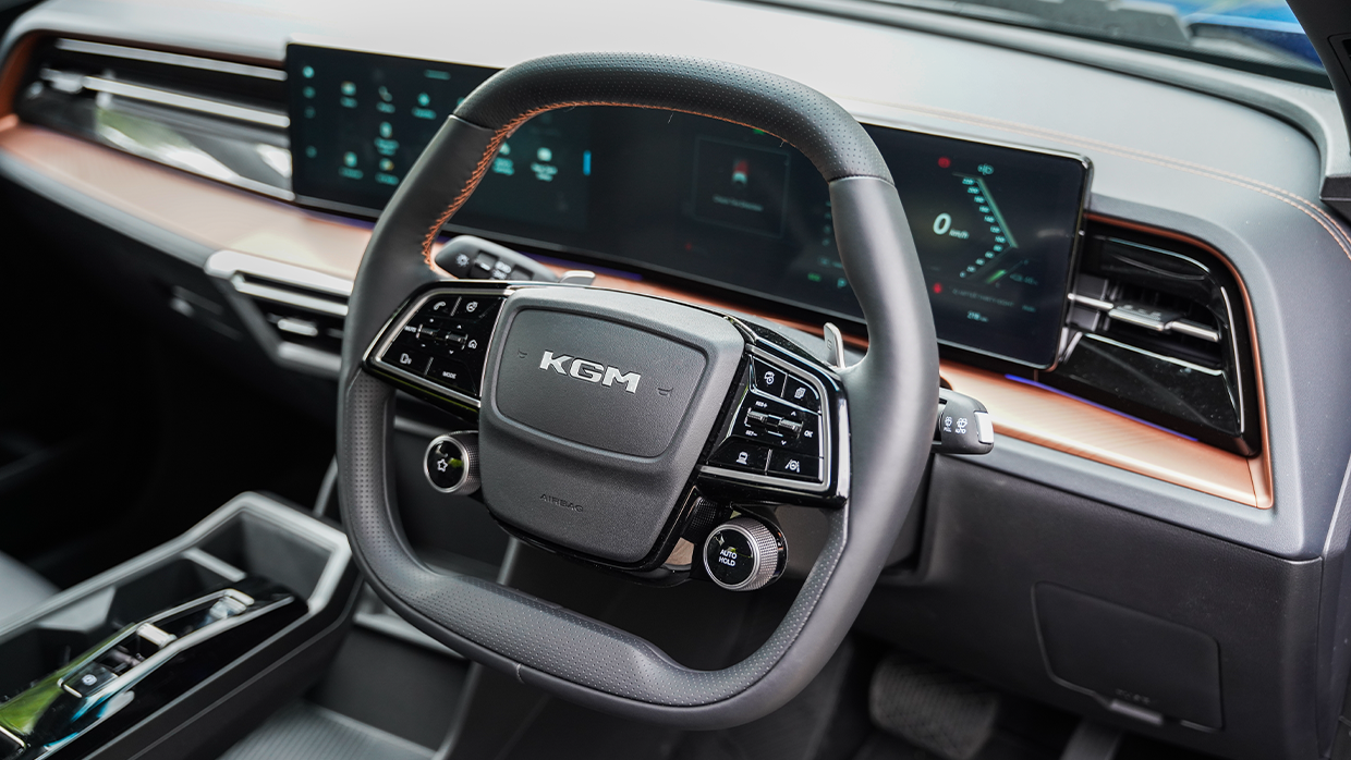 Presuming that KGM’s rivals will arrive without complication next year, the Musso EV still has a favourable party trick — a combined range figure of 420km WLTP in base front-drive form, or 380km WLTP when optioned with all-wheel drive.