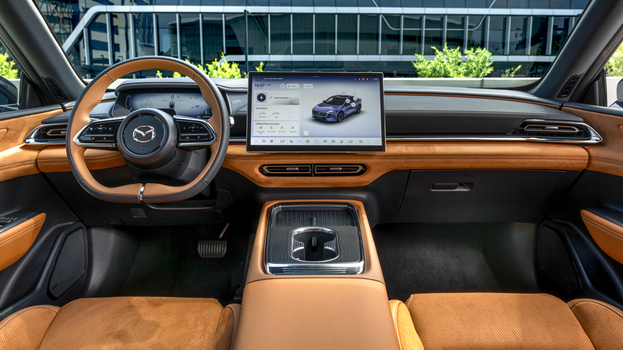 Mazda Australia hasn’t confirmed the 6e’s variant line-up for its Q2 2026 launch but it will be a small, high-spec range of at least two variants (the top likely being called Atenza, with the same spec as the car featured here), starting at less than $55,000 before on-road costs.