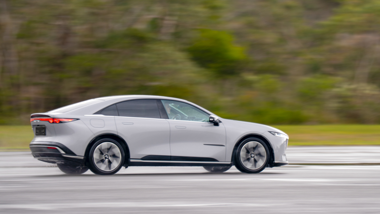 But pushing hard through undulating corners while testing the Mazda 6e’s damping, it tended to squirm more than expected, engaging the ESC with a chirp at the rear end as it braked the rear tyres trying to prevent roll-oversteer. In that regard, it’s still not quite as tight in terms of body control as it could be.