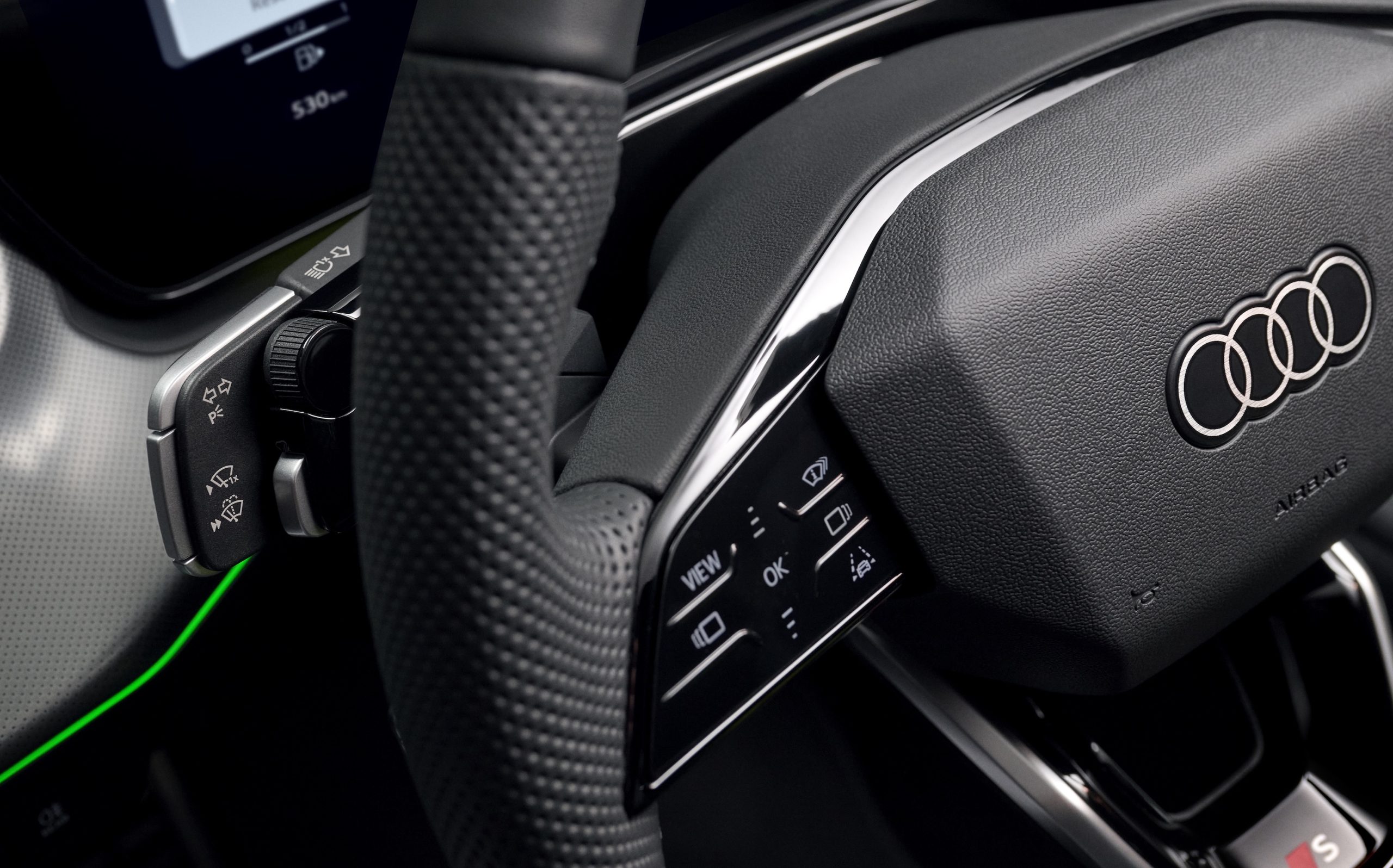 The big news for the Q3 interior is what Audi dubs a ‘Steering wheel control unit’ that dispenses with a conventional indicator stalk and instead employs physical buttons for directional changes on a fixed left-side stalk. This stalk also features buttons and a scrolling wheel for wiper functions.