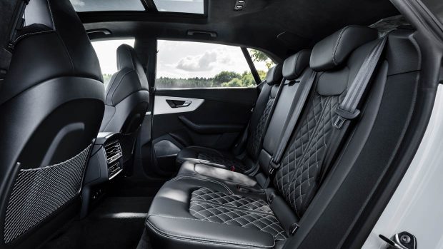Standard is Audi’s S-line exterior styling, 21-inch alloys exclusive to the model, red brake callipers, panoramic sunroof and HD Matrix LED headlights.