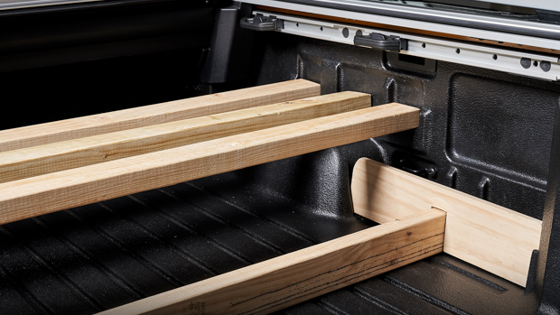 The tray also features a 12-volt outlet, a supported tailgate that can be raised and lowered with one hand while also doubling at a workbench when folding out. With mounting points for clamps and even a built-in ruler on Rangers without a bedliner.