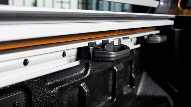 The Ranger Wildtrack grades gain side rails that run alongside the bed to easy mount cargo, but can also be used as an additional tie-down point to make sure “that’s not going anywhere”.