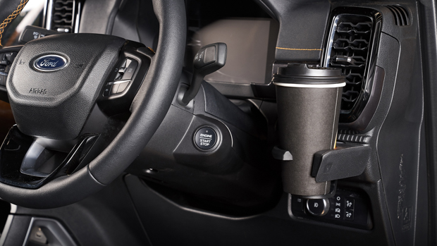 A retractable cup holder has also been fitted on the driver’s side with claws big enough to hold a coffee suitable for a 3am wakeup.