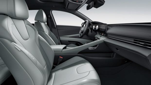 Inside, the i30 Sedan appears to be largely unchanged, with the prominent passenger grab handle and dual large screens sitting centre stage.