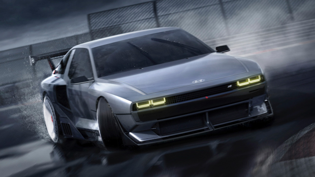 The Hyundai N Vision 74 is a two-door, battery electric coupe with two rear electric motors supported by a range- and power-boosting on-board hydrogen fuel cell stack. Producing about 500kW in total power, it’s a highly sophisticated concept – and expensive one.