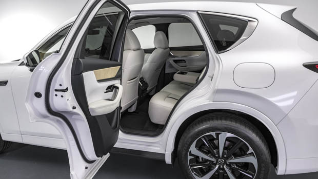 Mazda’s apparent decision to scale up the size of the CX-60 has also carried over to the inside where occupants will find 44mm more shoulder room in the front row and 50mm more in the second row than the CX-5.