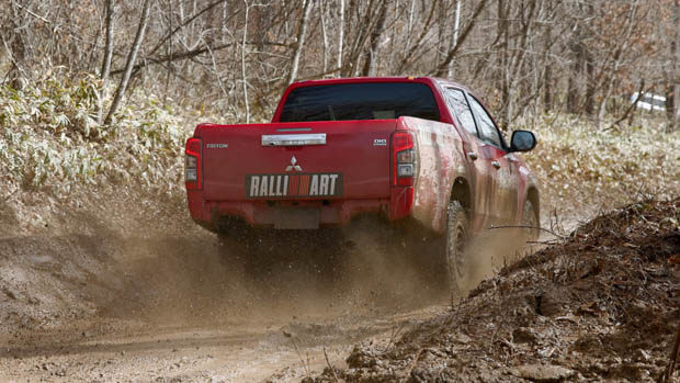 Race car features that could form the basis of a Triton Ralliart include toughened suspension and brakes, a retuned engine, high-flow exhaust, trick diffs, and unique wheels and tyres.