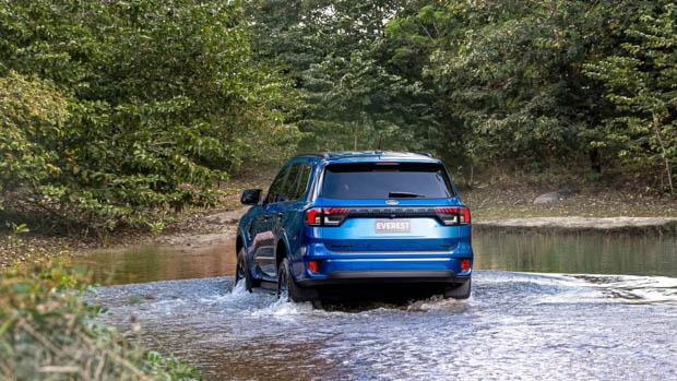 Sharing much of its appearance and interior with the Ranger ute, the Everest swaps out the dual-cab’s leaf-sprung rear suspension for a more comfortable coil-sprung setup, while braked towing capacity has been increased to 3500kg, matching the MU-X.