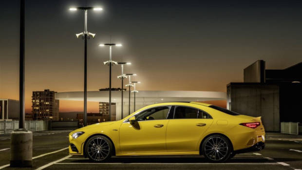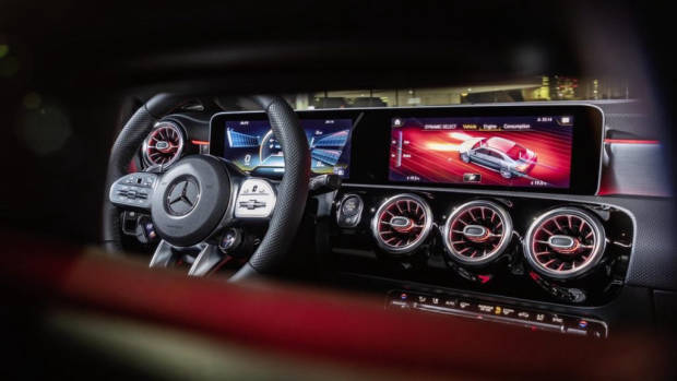Additional tech found in the AMG CLA 35 variant includes electric heated leather seats, automatically adjusting ambient lighting, larger 19-inch alloy wheels, and additional steering wheel controls with dual LCD read-outs.