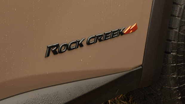 Also featured on this special edition is Rock Creek badging, exclusive leatherette/fabric seats, orange contrast stitching on interior items including steering wheel, seats and door panels and an intelligent around-view monitor with an off-road mode.