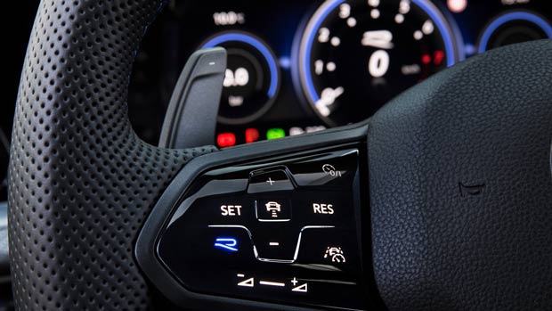 The hot VW’s turbo-four is mated exclusively (sorry, three-pedal fans) to a seven-speed wet clutch DSG, now with larger steering wheel paddles.