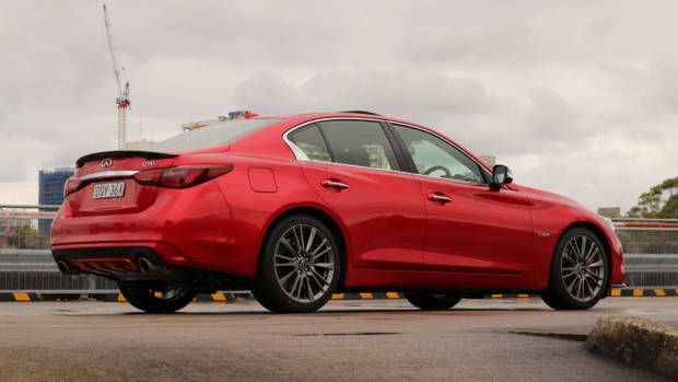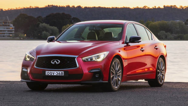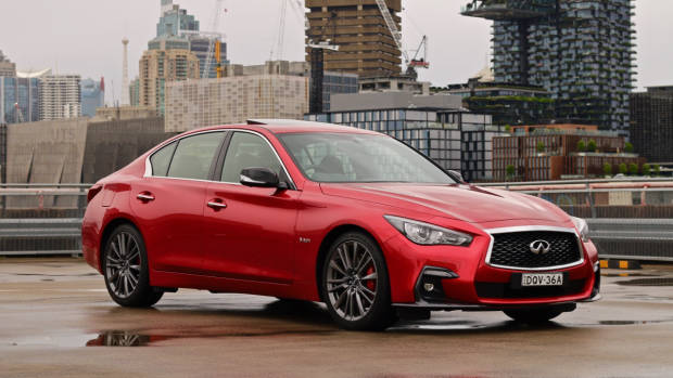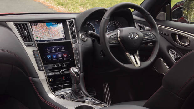 Above the Pure is the Sport, which adds – among other things – AEB, adaptive cruise control, lane departure warning, blind-spot monitoring and rear traffic alert. The Sport is available with the same 3.0-litre turbo V6 as the Pure, or a 264kW/564Nm 3.5-litre V6 electric hybrid drivetrain combination. The hybrid Blue Sport is priced at $70,900 plus on-road costs. The top of the Q50 range remains the Red Sport with an uprated 298kW/475Nm tune of the turbocharged V6 engine, though it is now $5,000 less expensive at $74,900 plus on-road costs.