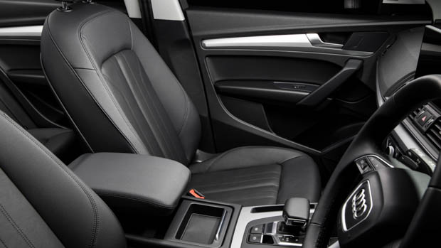 Inside, the entry-level Q5 is finished with leather upholstery, electric front seats with heating and four-way electric lumbar support, colour ambient lighting, a leather multi-function steering wheel and three-zone climate control.
