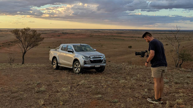 We had to get some shots of the outback with the utes flying on by so we set up Alek and his camera by the side of the road and let Ponch do his thing behind the wheel. The bugs were relentless and the heat smouldering our backs, but we stood there by the side of the road in what felt like forever as we filmed each of the three cars in succession. Alek got the drone out for a few shots and I watched the footage live as he took to the sky. I was amazed at the beauty of the landscape around us and just how stunning this part of the world really is.