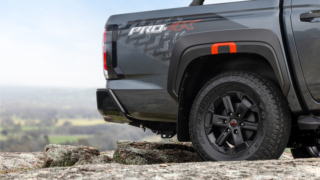 Finally, the PRO-4X rounds out the 2026 Navara model range, starting from $68,418 (up $6135). It adds a unique front grille, 17-inch black alloys with all-terrain tyres, flared wheel arches, roof rails, unique tailgate badging, orange interior stitching, and tow-kit over the Navara ST-X.