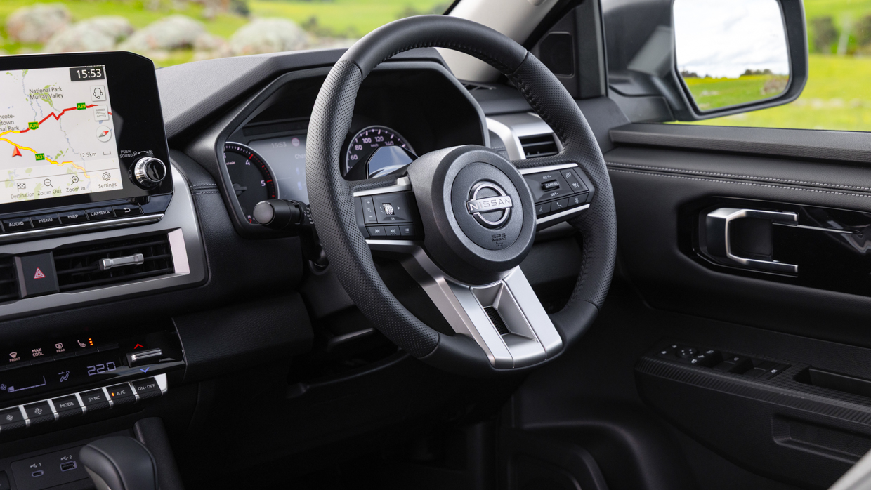 The base model Navara SL starts from $53,348 (up $2620 over previous gen) before on-road costs. Standard equipment includes an electronic rear diff lock, LED headlights and taillights, seven-inch instrument cluster, nine-inch infotainment screen, and dual-range transfer case offering 2H, 4H and 4L.