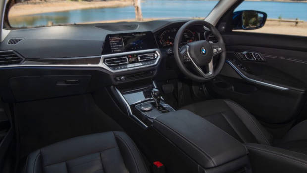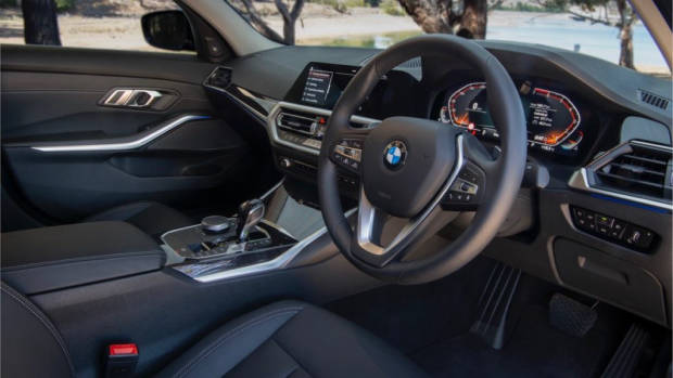 But for an extra $3,000, the 330i makes so much more sense. First, it fixes the safety nonsense by throwing everything in: the petrol’s triple-camera setup means iti gets full AEB that stops the car, full lane keep assist that works for up to 25 seconds, front cross traffic alert, junction cross traffic braking, a 360-degree parking camera, and a host of other clever tech. You also get adaptive dampers, 19-inch wheels, leather on both variants, full keyless access, and beefier M Sport brakes. It’s a worthy upgrade.