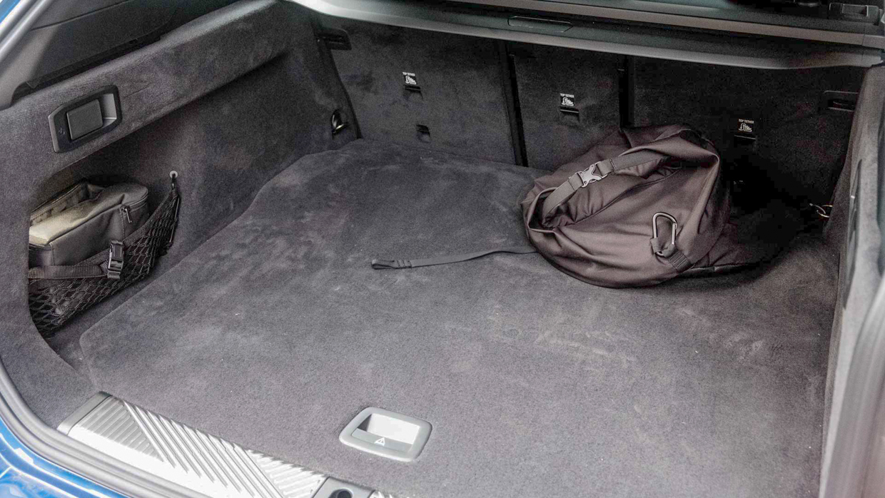 In the M5 sedan the boot is compromised by battery packaging, this is much less significant in the Touring. It’s a really long space with a slight upward slope and narrow width through the middle, so although it looks huge the official rating is 500L — identical to the smaller M3 Touring.