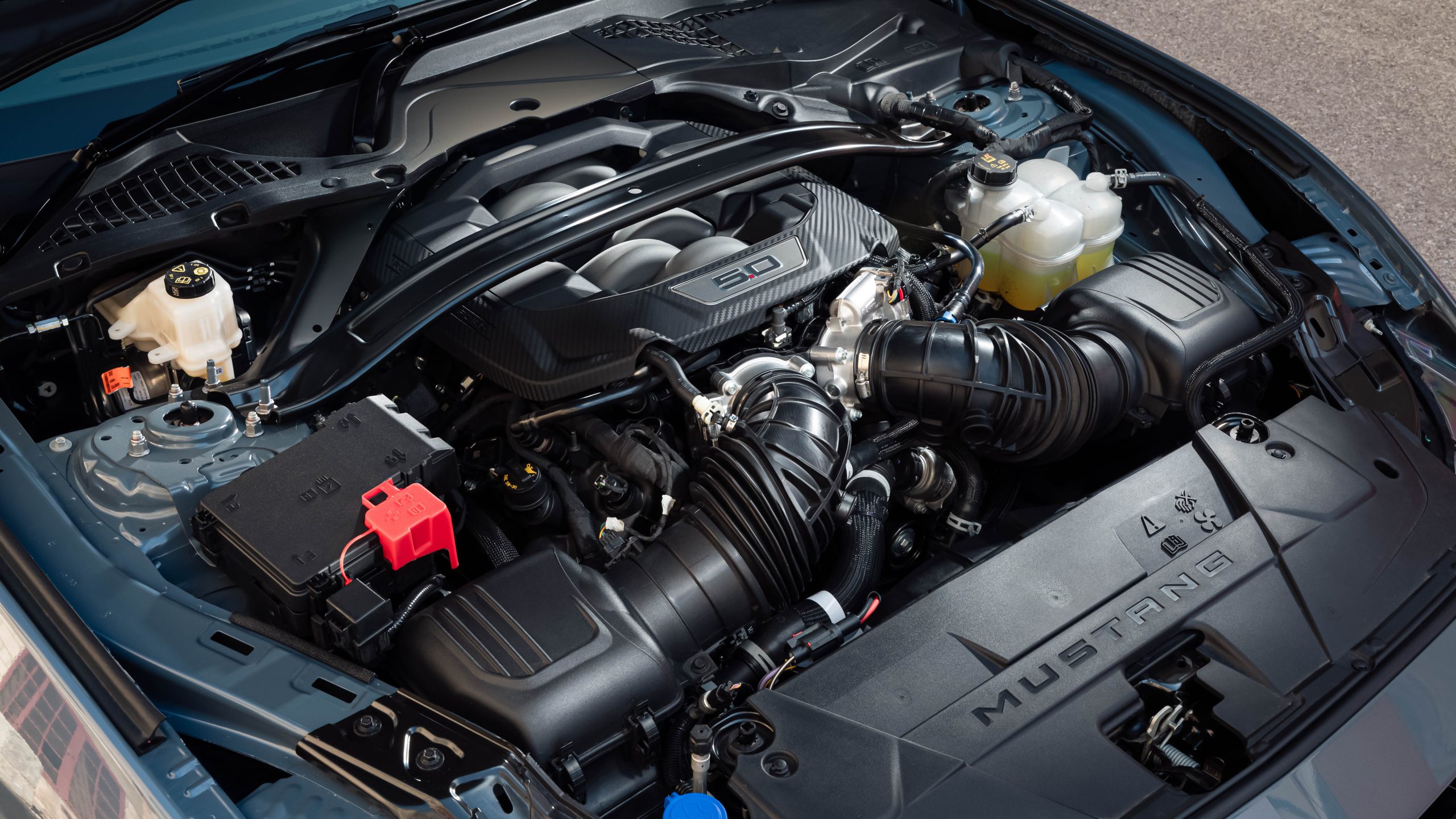 The 5.0-litre Coyote V8, which first debuted in 2011, has now reached its ‘Gen IV’ iteration. There are dual 80mm throttle bodies maximising intake airflow, a high 12.0:1 compression ratio and similarly lofty 7500rpm redline. There’s also dual port/direct fuel injection.
