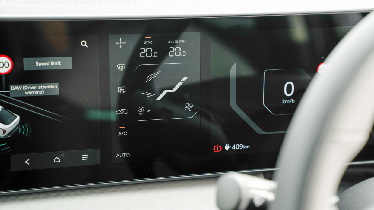 Passive dampers are fitted across the range — no frequency selective items like in EV3 — and they can be overwhelmed on rough roads, occasionally struggling to absorb large bumps. But the modest 2820mm wheelbase and wide stance dispel much of the drama while also giving the EV4 a sense of composure and maturity on the road.