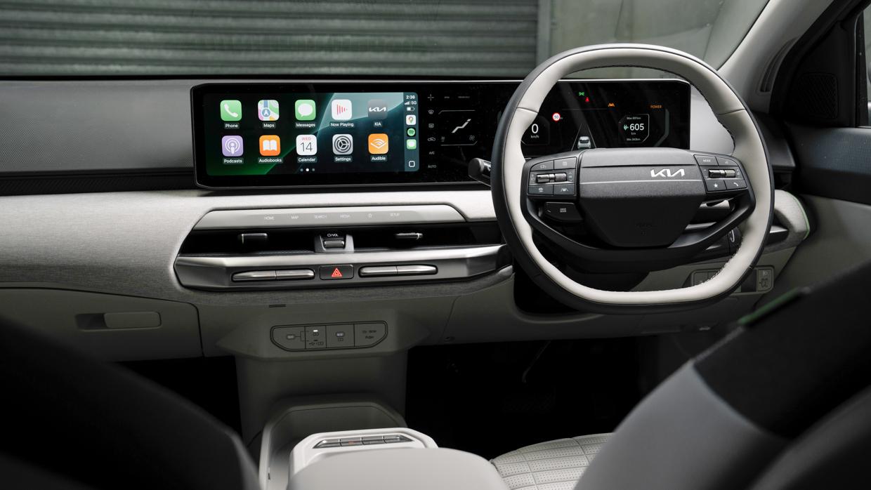 The dash consists of a 12.3-inch digital driver’s display and a 12.3-inch multimedia screen, with an additional 5.0-inch unit tasked with climate control functions, as is common in many current Kia models. Working in conjunction with physical controls on the dash and steering wheel, the layout is easier to comprehend than most rivals.