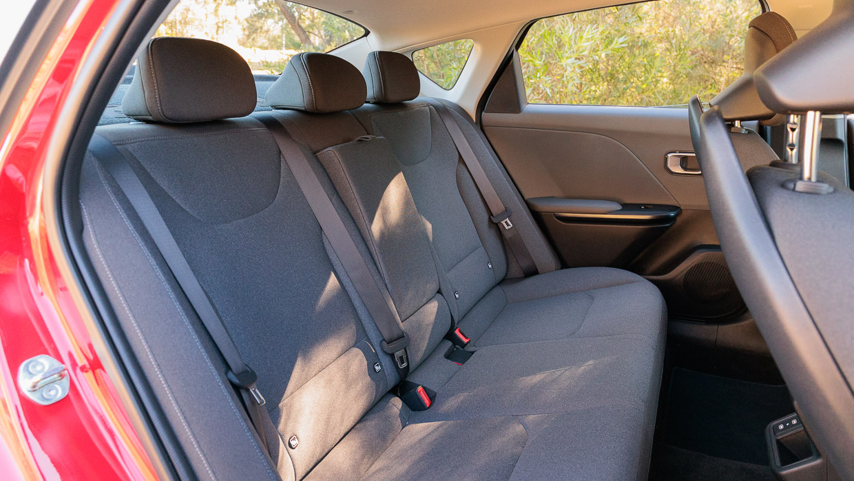 Rear accommodation is very generous — there’s six centimetres of extra kneeroom compared with the old Cerato which, itself, was no slouch for roominess.