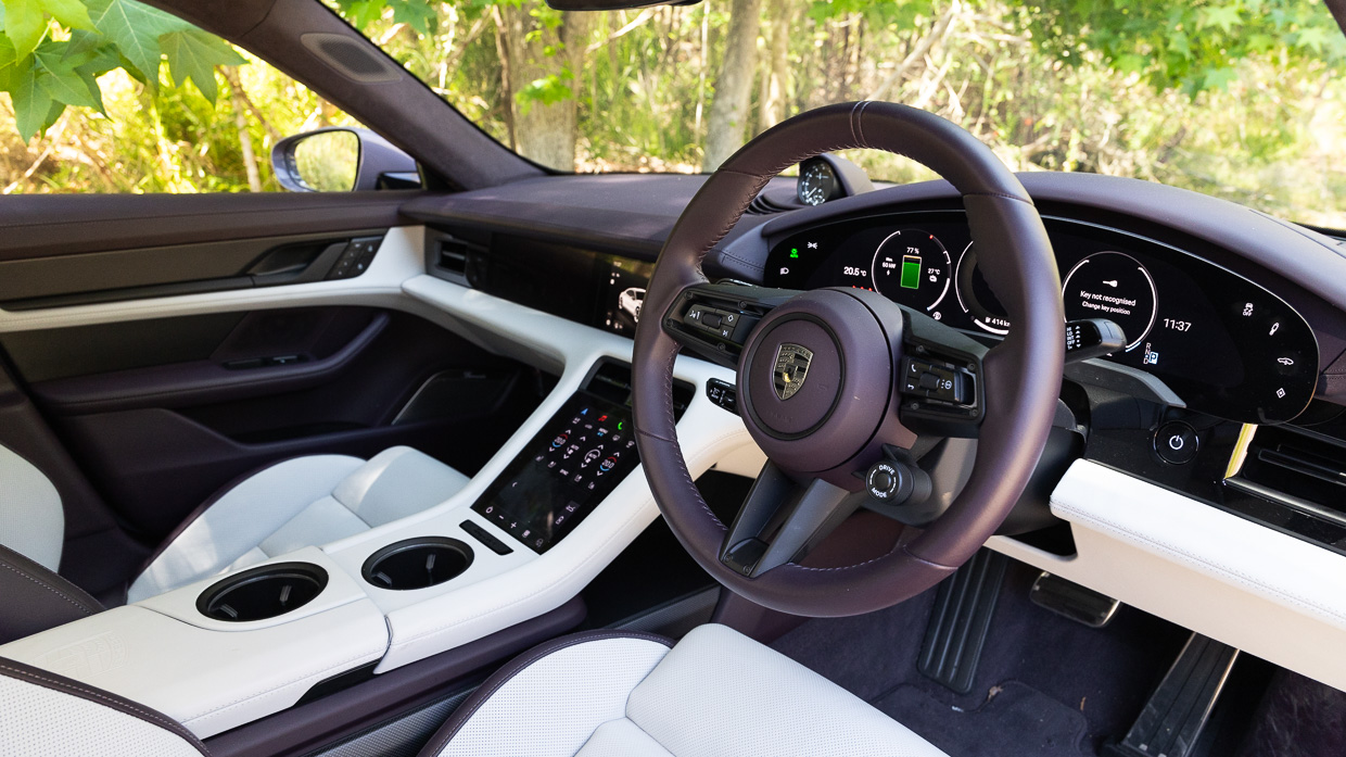 It’s not Porsche’s style to broadcast virtues from the hill tops, but buried in the finer print of its media communications were a host of ‘green flags’. Such as a range claim of up to 600 kilometres. Such as entirely new battery chemistry. And such as a 0-100km/h claim of 2.4 seconds for a 2.3-tonne four-door.
