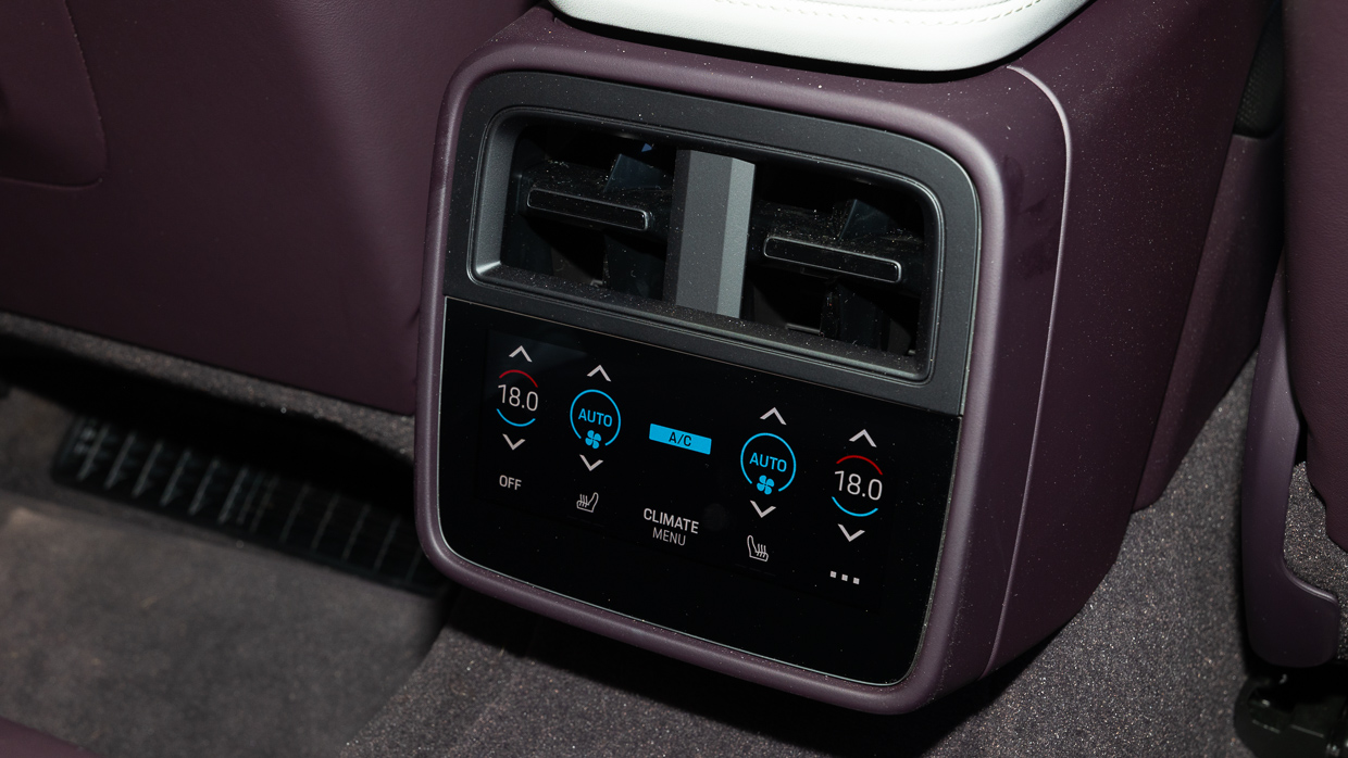Four-zone climate control, adjustable in the rear via its own dedicated haptic touchscreen, is real class, though the absence of any rear-passenger device power is a curious omission.