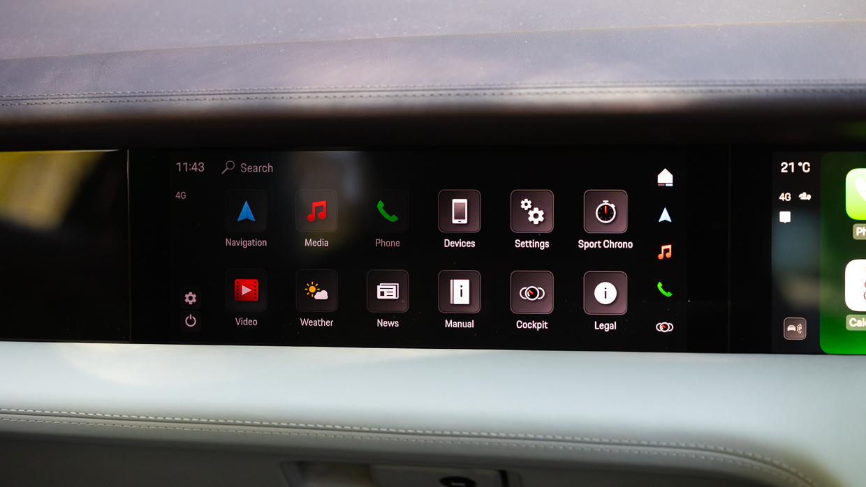 Porsche’s Variable Light Control glass roof is inspired. It transforms from clear to heat-taming semi-opaque at a touch of virtual button, or half-half in all manner of combined ‘panels’ via a slider function in the touchscreen.