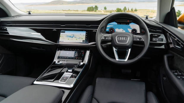 Like in the A8, Audi’s flagship saloon that shares a number designation with this Q SUV, you’ll find leather extending to the dash, which looks appropriately expensive. However, if you want more leather surfacing on the Q8, you’ll need to tick the ‘Full leather package’ ($8,900), which adds nappa leather to the door tops, instrument panel, centre console and door rails.