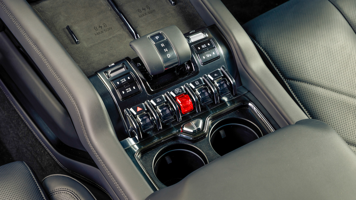 The standard 18-speaker Devialet sound system is solid for the price point and the seven-litre hot/cool box under the arm is incredibly welcome on a road-trip vehicle – though we did note an error in one test vehicle where it repeatedly failed to close with no obvious blockage.
