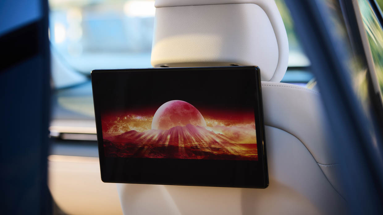 The all-singing, all-dancing front pews are 18-way adjustable, heated and ventilated, and offer massage functionality that’s nice (and surly) when you want it. However, that they automatically activate after an hour on the road is both surprising and distracting as you fumble around to try and switch them off when you’re not up for the back poking.