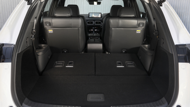 Second-row comfort is also excellent with headroom to match a CX-9 and, despite the slimmer waistline, there’s still a heap of shoulder and hip room. We also particularly like the massive rear doors that open 90 degrees for the ease of loading children and large objects, for example.