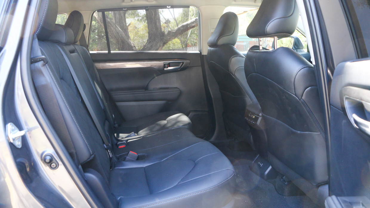The Kluger features a fantastic amount of large storage cubbies, which continue to the generous second row, overlooked by a full-length panoramic sunroof. It joins other niceties such as a separate third-row climate control matched with face-height vents, pull-up sunshades and USB-C charging points.