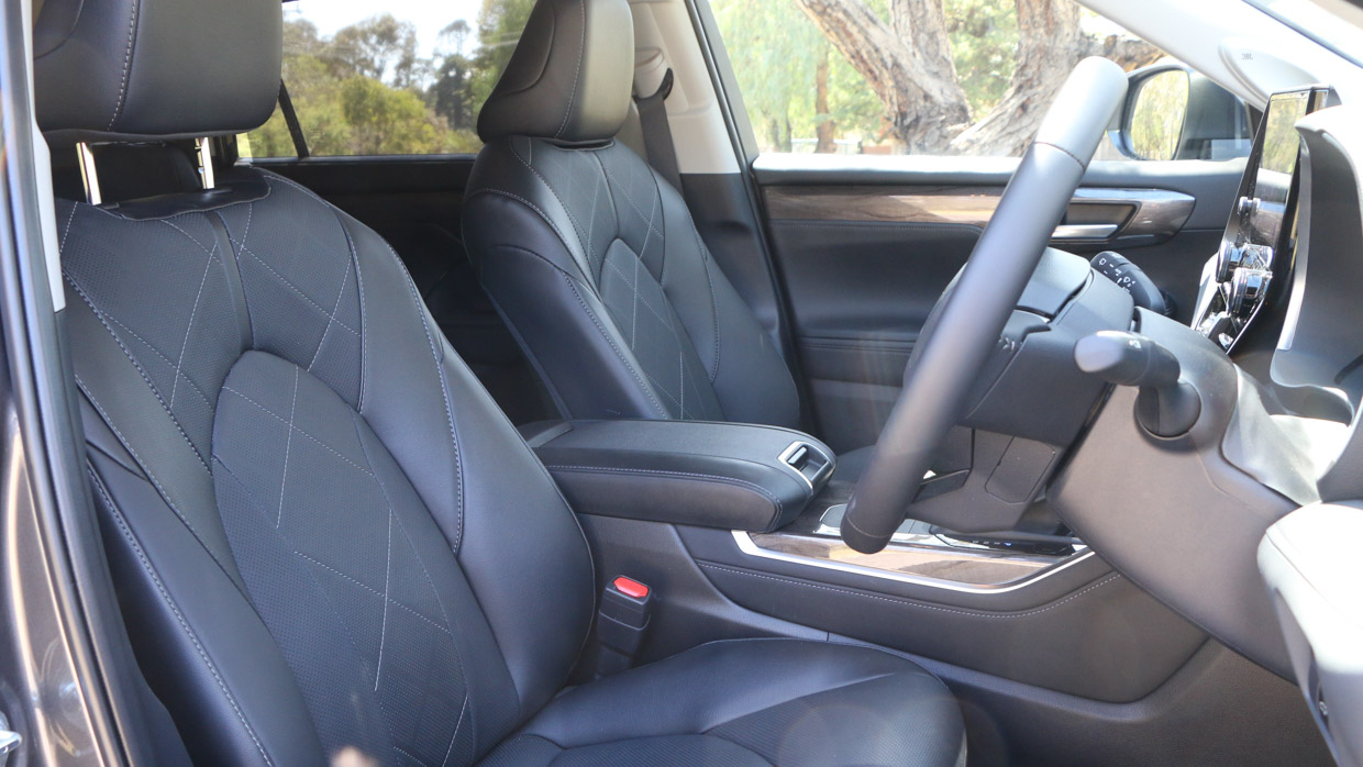 Fake wood inlay adds a sense of expense (to taste) but the expanse of rock-hard plastic surfaces everywhere else dial it straight back. Some family buyers may appreciate the extra durability that comes from these Hilux-like finishes but it feels unsuitable for a $93K SUV.