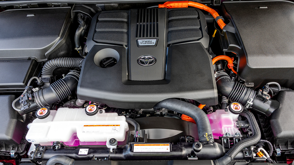 Unlike the Toyota Hilux and 250 Series Prado, which received 48-volt mild-hybrid systems, the 300 Series gains a significantly stronger petrol-electric powertrain with an e-motor sandwiched between the 3.5L twin-turbo petrol V6 and 10-speed automatic transmission.