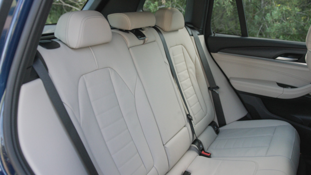 In the back the X3 continues to cater for tall humans with headroom for someone over 188cm tall, as well as ample knee and toe room. The bench is very comfortable and supportive, with only the sizable transmission tunnel potentially hampering the ability to fit three across.