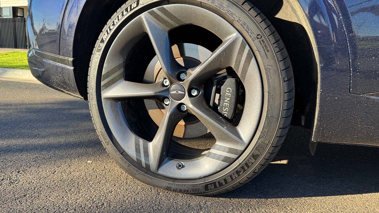 A quick call to Genesis’s roadside assistance crew and the spare was fitted while I continued to bash away at my laptop on urgent matters, allowing me to take the wheel to the shop and get the new tyre fitted to the 2.5T later that day.