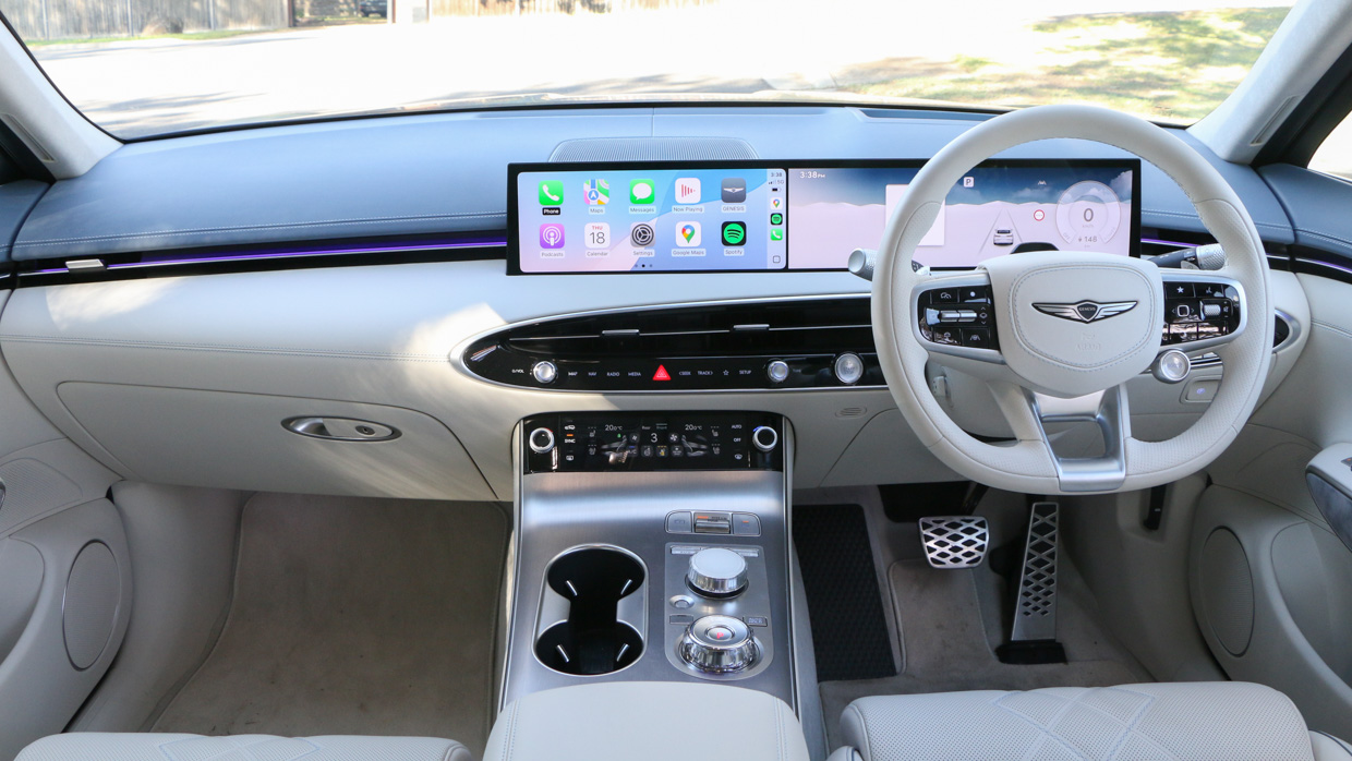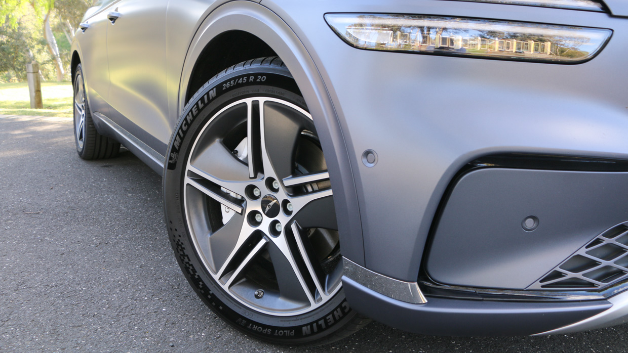 With firmer suspension designed to support the extra quarter-tonne of heft, Genesis has wisely downsized the 21-inch wheels equipped on much of the range for more appropriate 20s with slightly more sidewall to cushion the ride.
