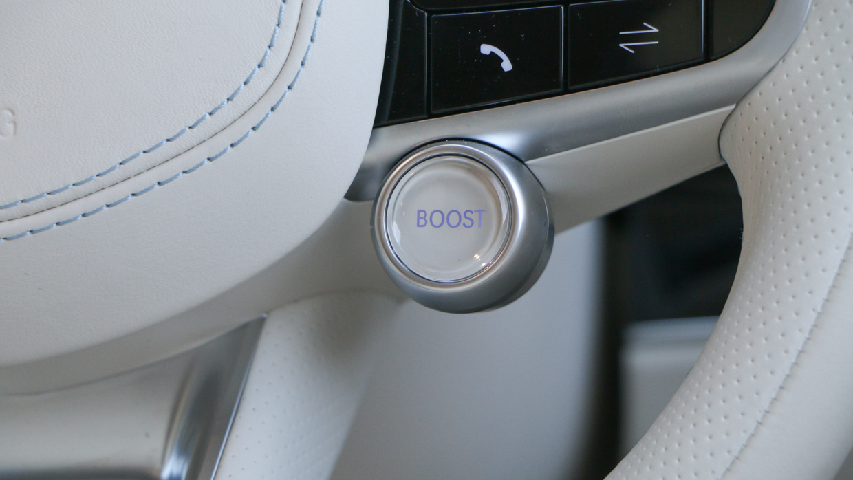 The smaller wheels are one of the few exterior changes made to the EV version, aside from a more futuristic closed-in grille design, with the interior largely the same – save for the ‘Boost’ button on the steering wheel to unlock its full might.