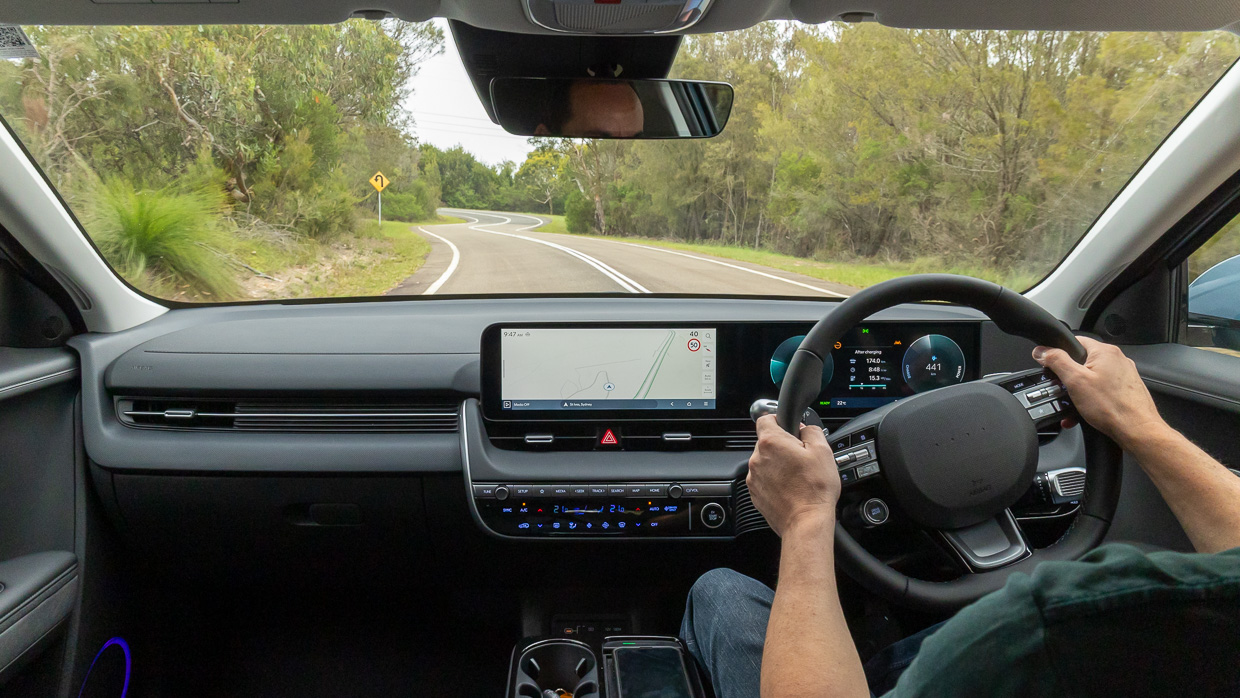 The Ioniq 5 RWD feels lighter on its tyres than its weighbridge ticket suggests. Despite the huge three-metre wheelbase, it’s dynamically eager and offers quite assertive body control, with a crispness to its nature in part due to the clear and fluid steering unburdened by front-axle drive.