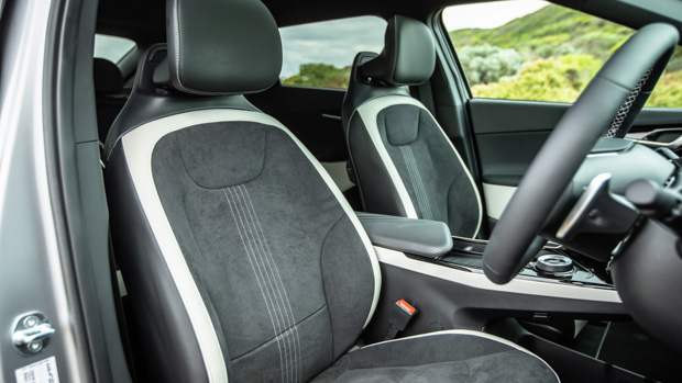 We love the fact that Kia has totally eschewed the vinyl upholstery that is far too common among electric vehicles (being free of animal products, it aligns with the environmental values of some EV buyers). Vinyl feels cheap and in a hot country like Australia, it induces sweat very quickly indeed.