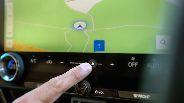 Cleverly integrating displays in the physical temperature knobs – there’s a volume knob, too – the screen always features a thin menu for climate controls and shortcuts on the driver’s side, but the main pane is customisable. We preferred to leave this on Apple CarPlay for Waze or on the NX’s own navigation, which looks great.