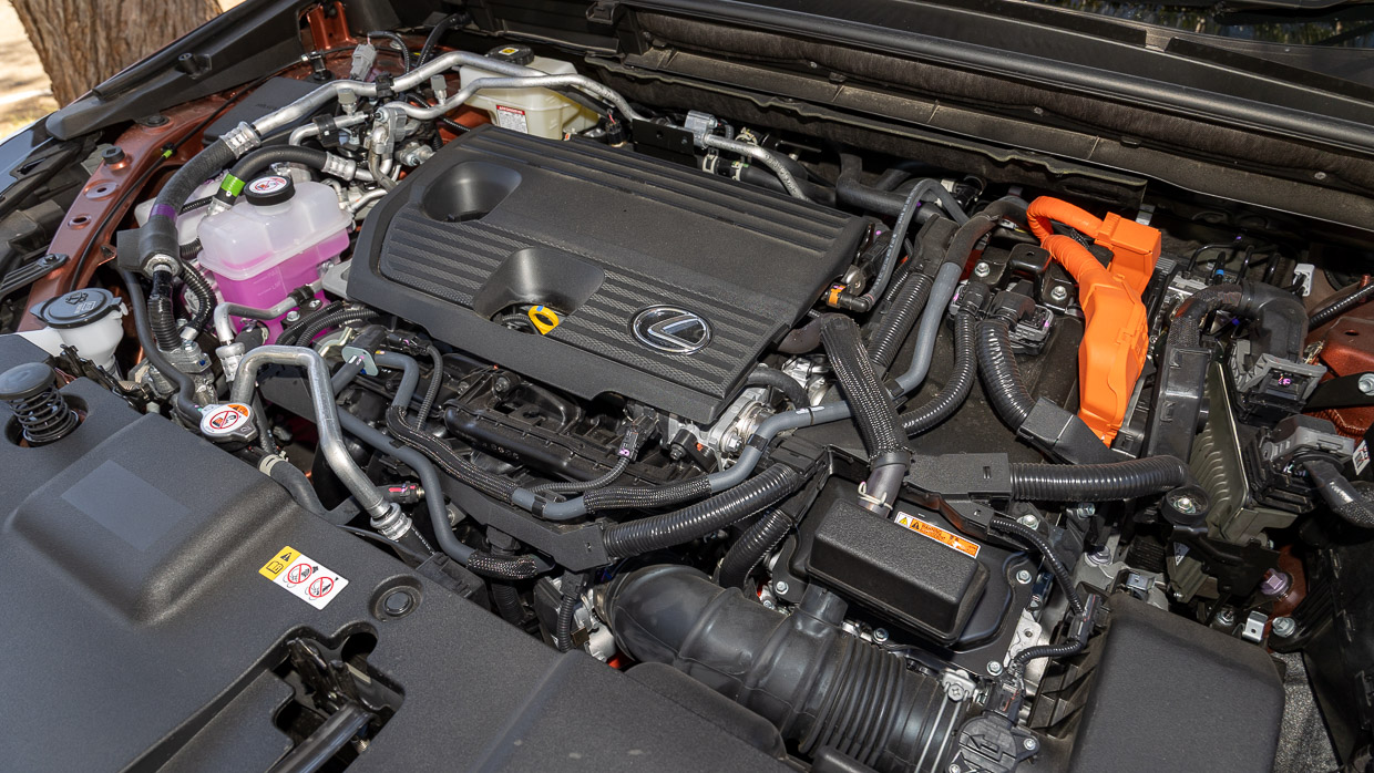 That version fits a 2.5L natural aspirated-based self-charging hybrid totaling 179kW in either front or all-wheel drive (for a $5800 upcharge) though, typical for Toyota/Lexus, there are no peak combined torque claims for either.