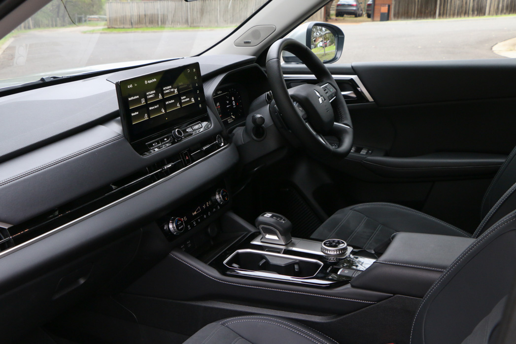 It joins the accompanying full-width 12.3-inch digital driver’s display in modernising and boosting the functionality of the Outlander’s cabin, if only slightly.