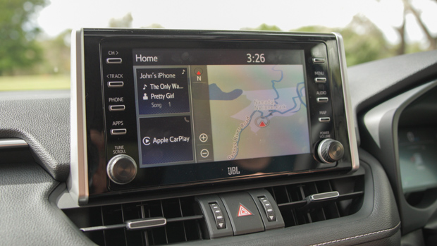 Toyota outfits the RAV4 Cruiser Hybrid with a 7.0-inch semi digital driving cluster, and it’s very serviceable – though you can’t put a map in the centre like you can in a Tiguan. The Hybrid Cruiser can be told apart from the petrol inside by the lack of tachometer, instead you get Charge, Eco or PWR charted on the dials.